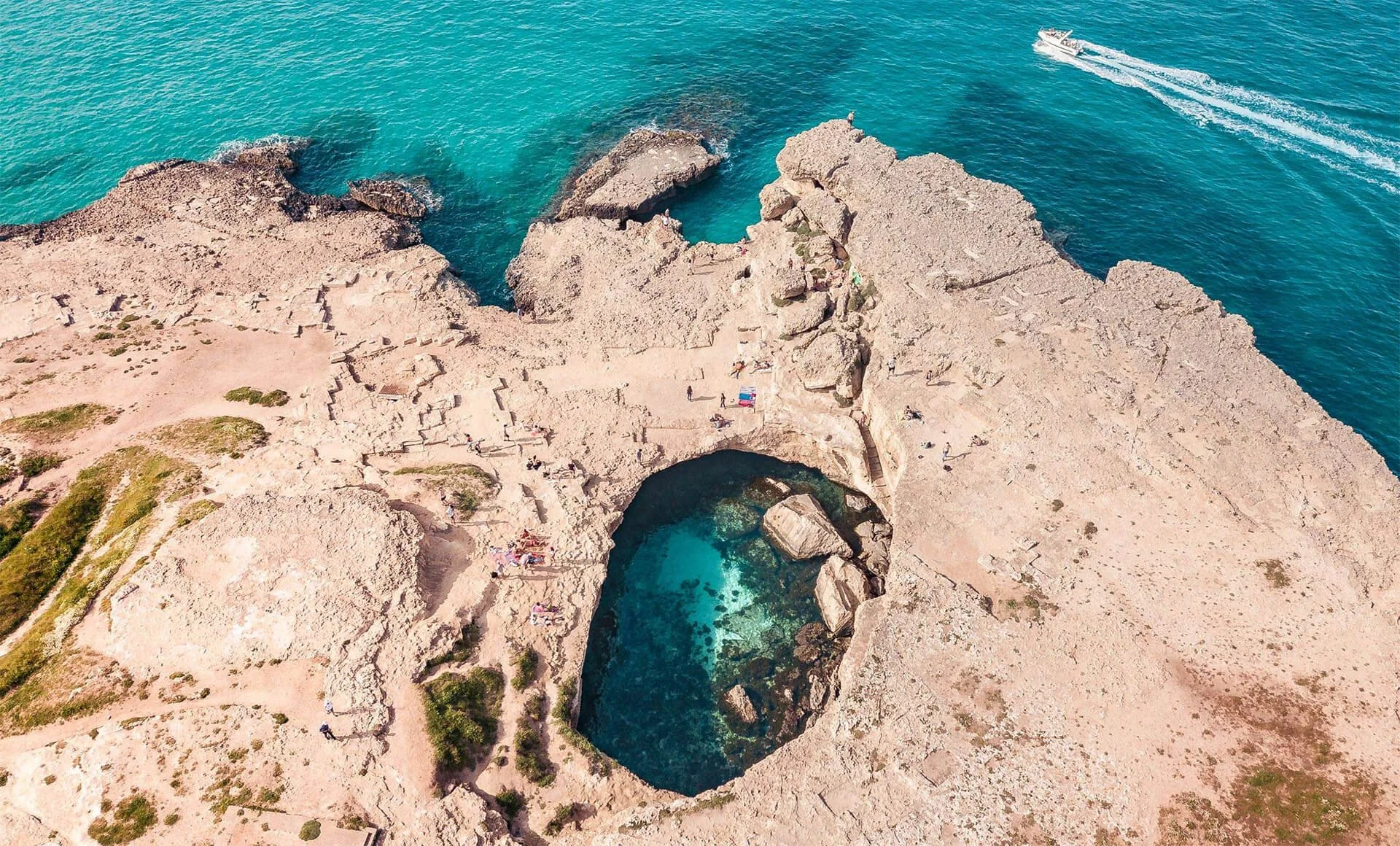 La costa adriatica del Salento offre spettacolari scogliere, come la Grotta della Poesia, dove è possibile fare tuffi indimenticabili in acque azzurre.